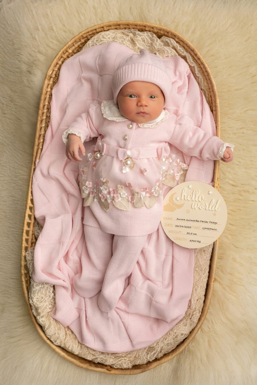 Aurora você é um presente muito especial enviado por Deus para os seus pais e toda a sua família, você realmente é uma princesa linda que veio pra colorir mais todos os dias, veio pra ensinar o que é um amor incondicional, que tornaram os seus pais mais fortes, capazes de tudo pra te proteger e te ver feliz, que Deus ilumine sua vida, que você cresça cercada de amor e que Ele te dê tudo que de melhor existir, são os desejos da tia a Rose e do tio Jorge.